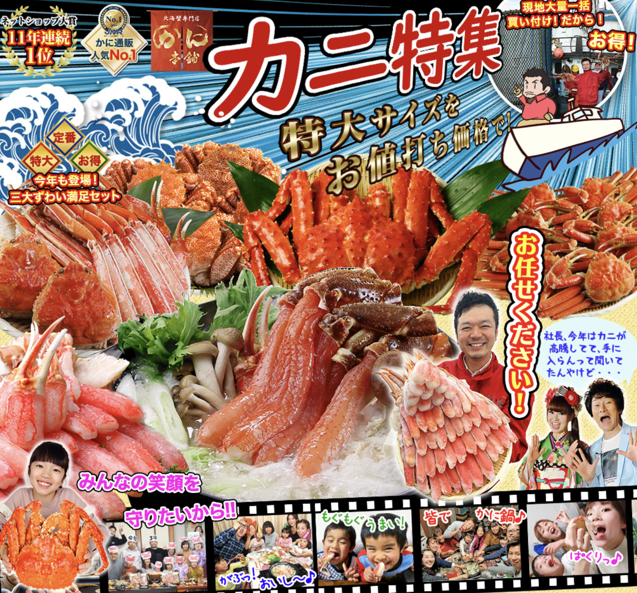 商品の品揃えが豊富で、食べたいカニが見つかる可能性が一番高いです。